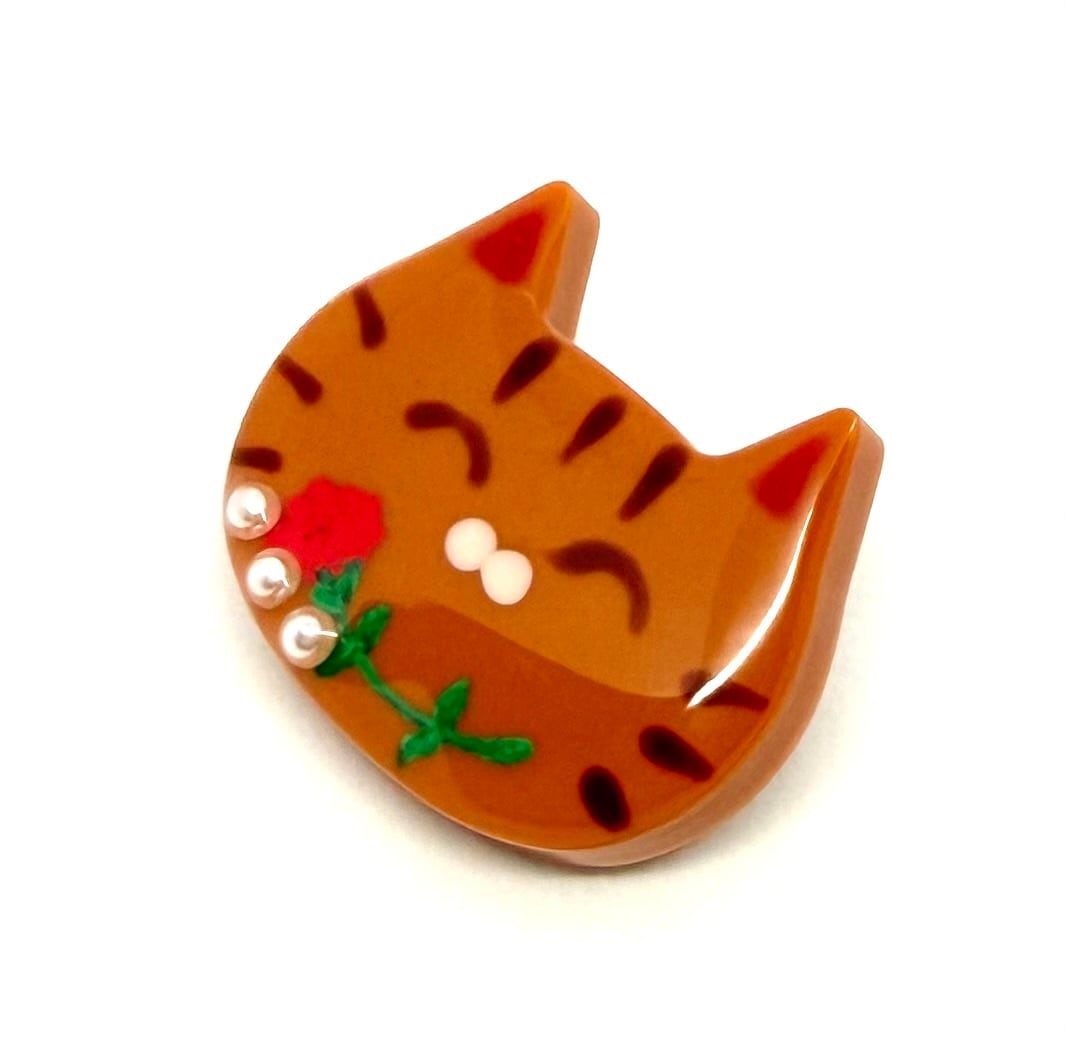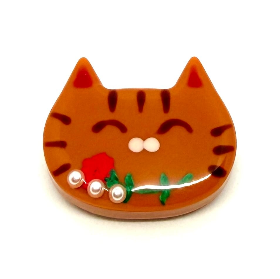 【母の日ギフト】みたらし猫ちゃんカーネーションブローチ(ピンク耳)|ほっこり可愛い猫アクセサリー